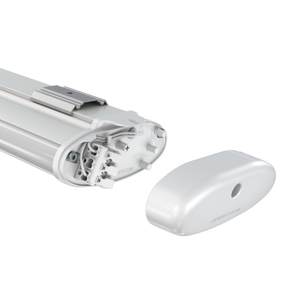 Компактный корпус из экструдированного алюминия сочетает высокую прочность и эффективный теплоотвод. Порошковое покрытие белого цвета повышает световую отдачу и сохраняет внешний вид в процессе эксплуатации. Степень защиты IP54 позволяет использовать светильник в помещениях с повышенной влажностью и запыленностью.