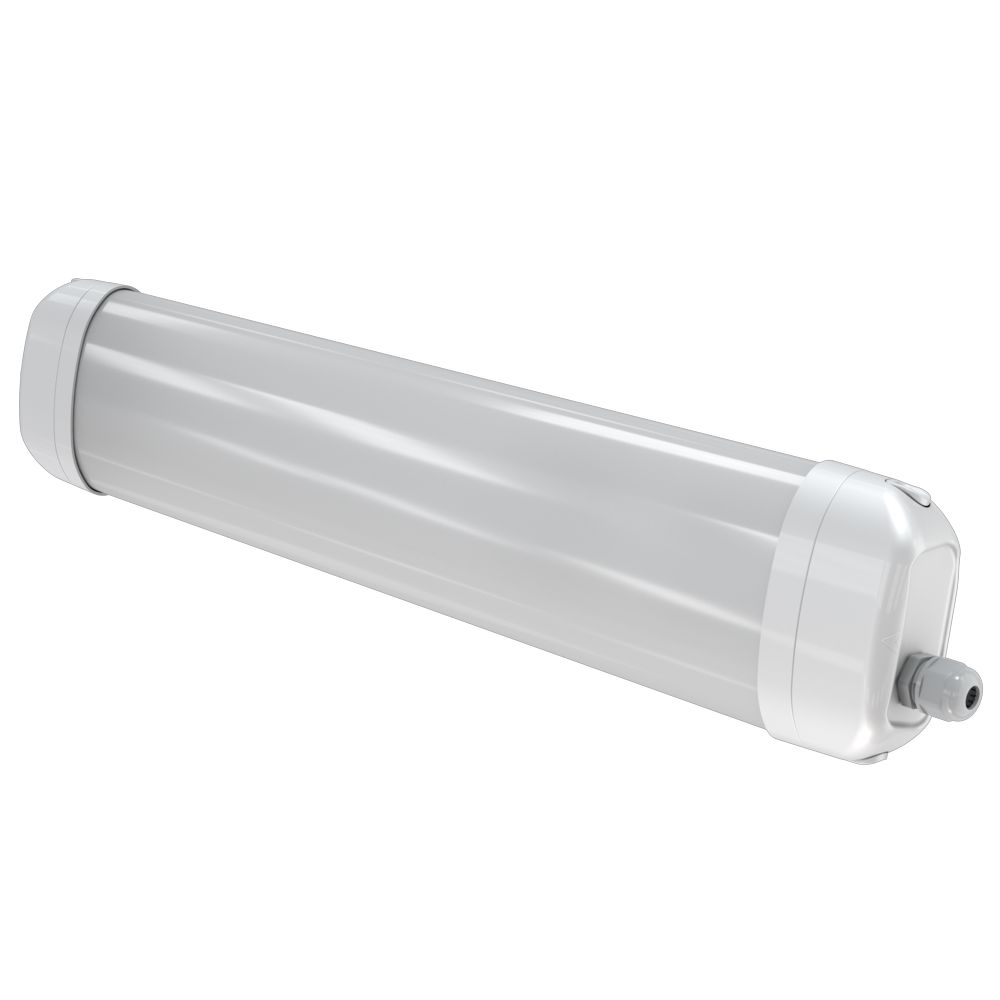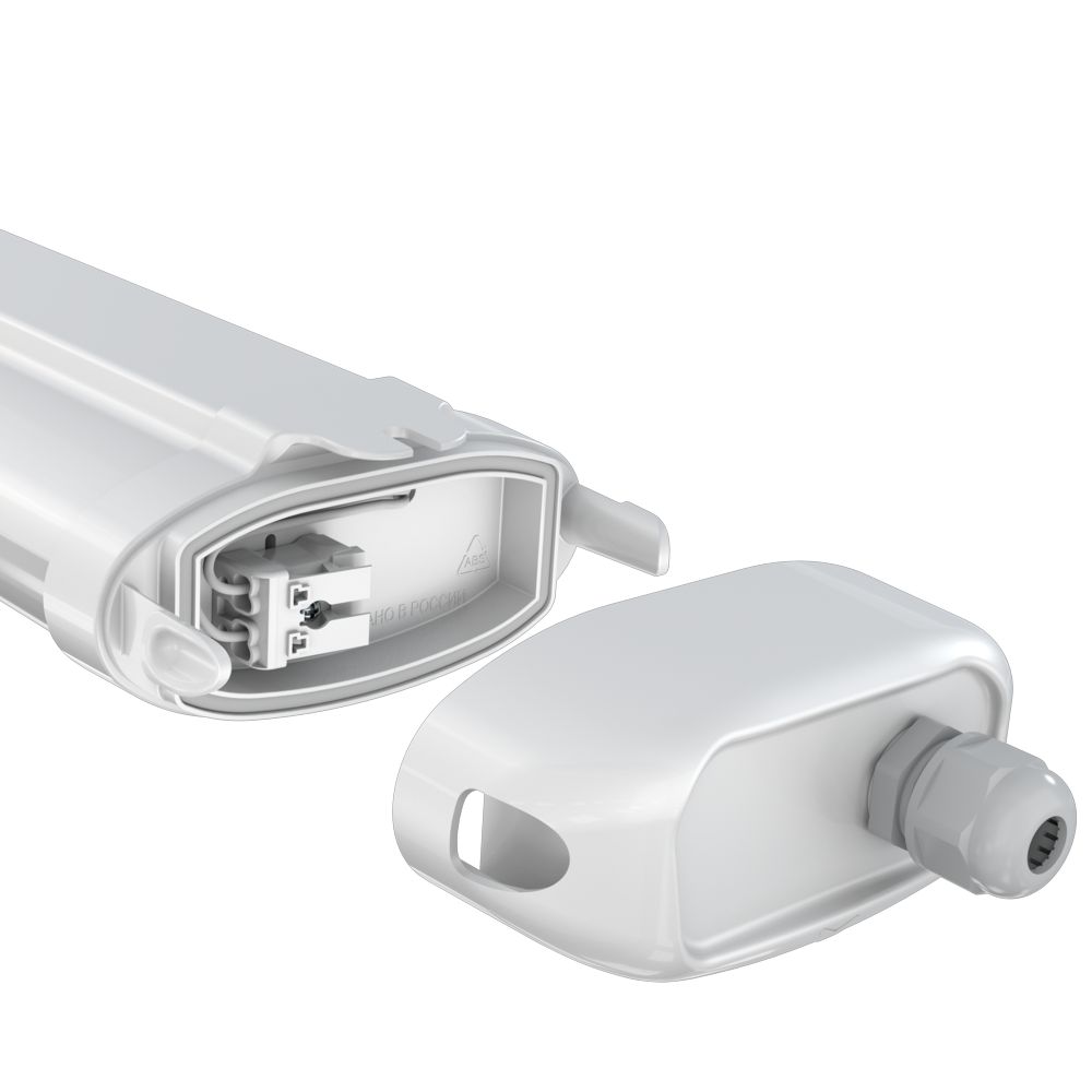 Корпус выполнен из УФ-стабилизированного поликарбоната методом коэкструзии. Материал устойчив к внешним воздействиям, не желтеет и сохраняет характеристики на протяжении всего срока эксплуатации. Степень защиты IP65 позволяет использовать светильник в пыльных и влажных помещениях, опционально доступно исполнение IP67.