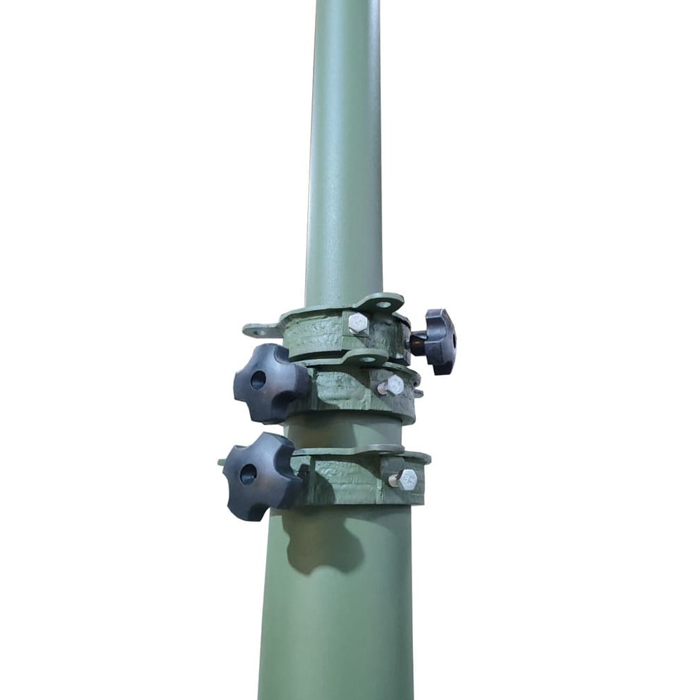 Мачта состоит из телескопических секций, изготовленных из круглых алюминиевых труб разного диаметра. Соединения фиксируются усиленными хомутами, что обеспечивает надежность конструкции и устойчивость при эксплуатации.