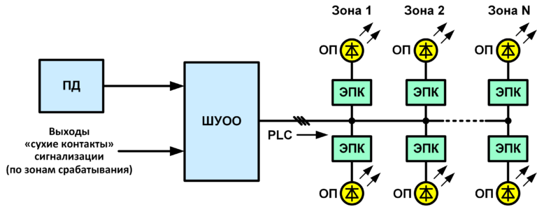 Передача команд управления осуществляется по существующим линиям электроснабжения с использованием технологии PLC. Пульт диспетчера позволяет при необходимости вручную корректировать режимы работы ОП в каждой зоне независимо от сигнализации.