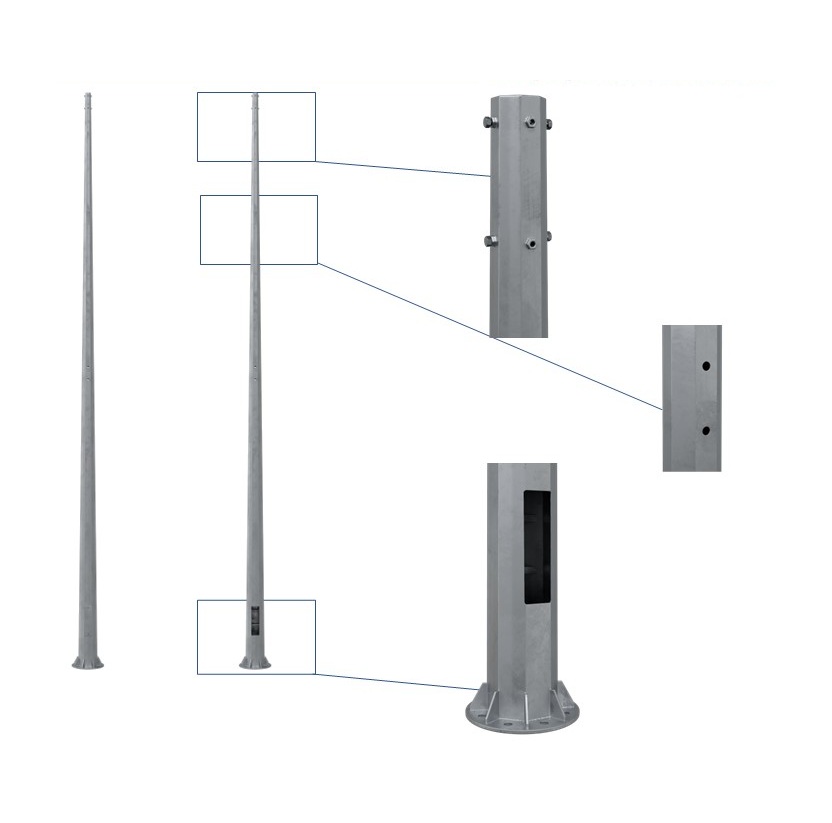 Опора рассчитана на повышенные нагрузки и обеспечивает надежную работу при размещении кабеля, светильников и дополнительного оборудования. Наличие лючка упрощает доступ к электрическим соединениям и обслуживанию.