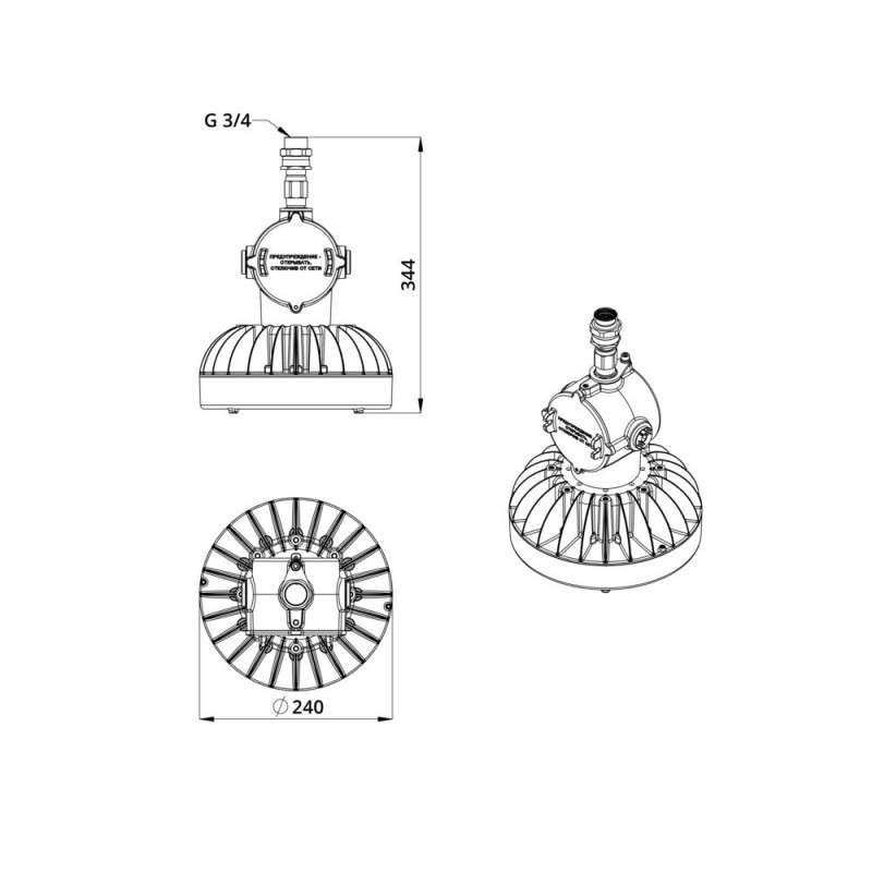 - Габаритные размеры светильника (ДxШxВ), мм ø240х322