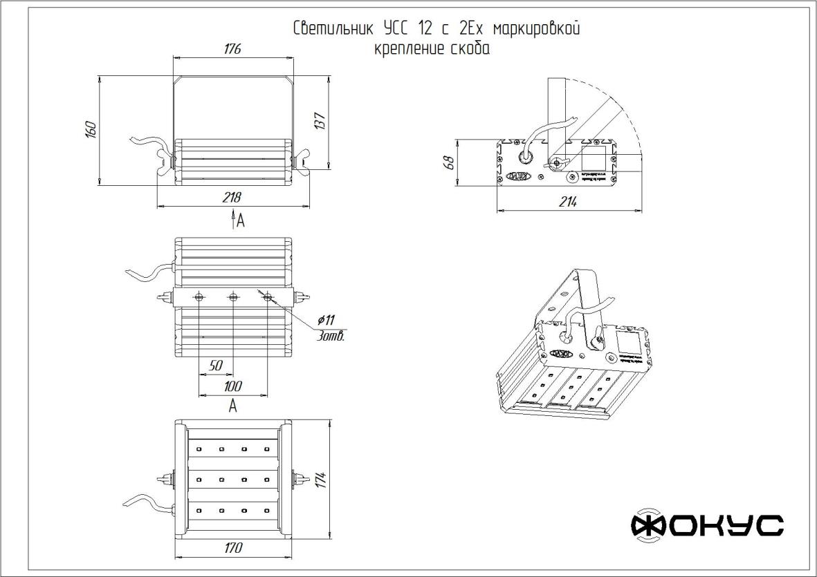 Для увеличения надежности светильник разделен на электрически независимые части и имеет независимые системы термостатирования. Также драйверы светодиодов оснащены запатентованной электронной системой защиты от превышения напряжения до 800 Вольт. Корпус выполнен из анодированного алюминиевого профиля со стеклом из противоударного оптического поликарбоната. Светильник крепится на любые консоли с посадочным диаметром трубы до 65 мм. Доступны крепления на трос, потолок и для встраивания в подвесные потолки.