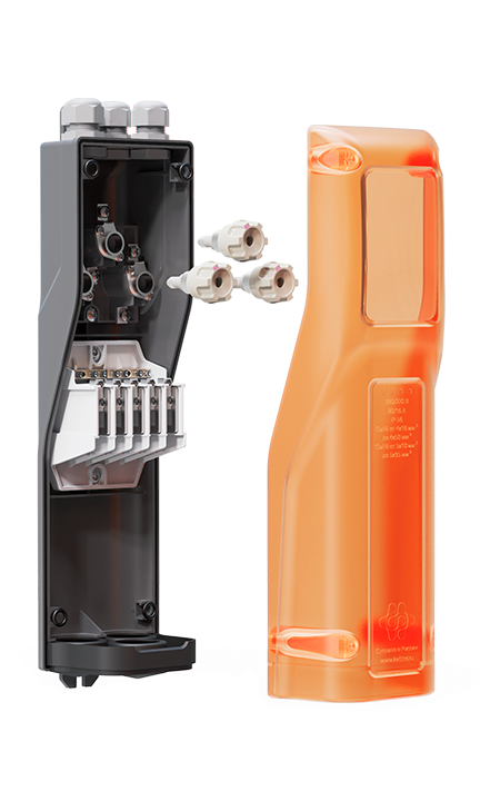 Наличие секции для расключения питающего кабеля позволяет не использовать в проекте кабельные муфты для данного соединения.